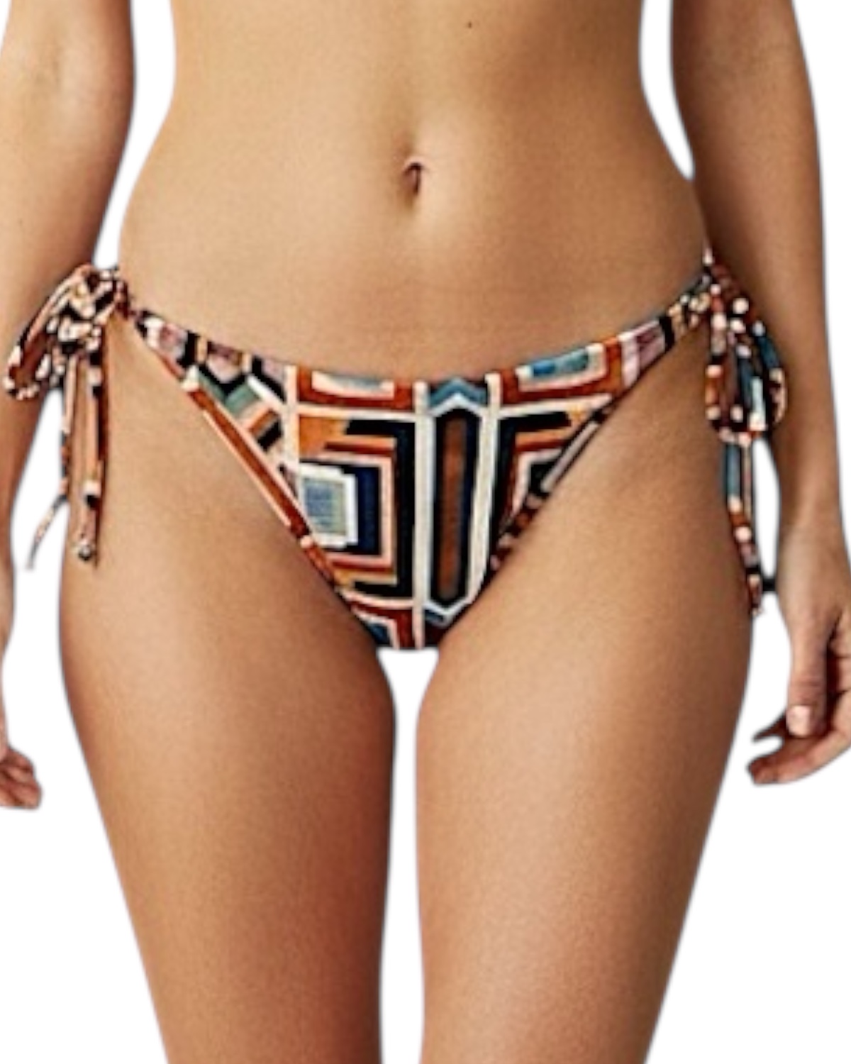 Tanga de Biquíni sem costura na parte de traz, com amarração lateral e detalhe de argolinha dourada.