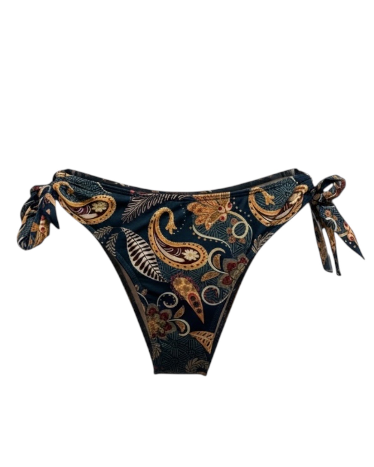 Tanga de biquíni lateral média com detalhe de amarração na lateral. Modelagem muito confortável com ajuste.