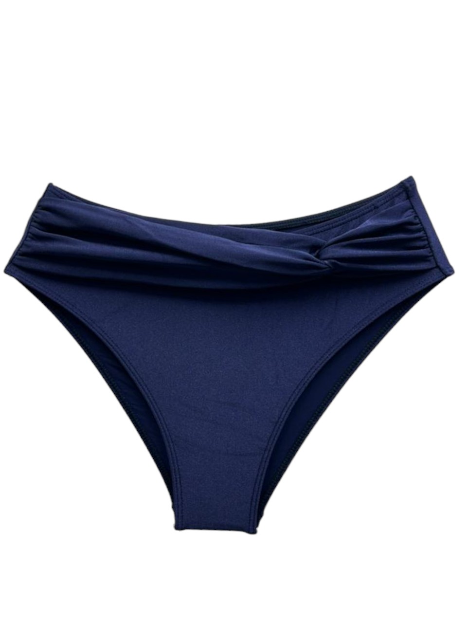 Tanga de biquíni modelo sunquíni, lateral larga e cós alto com detalhe somente na parte da frente de faixa entrelaçada formando um nó.