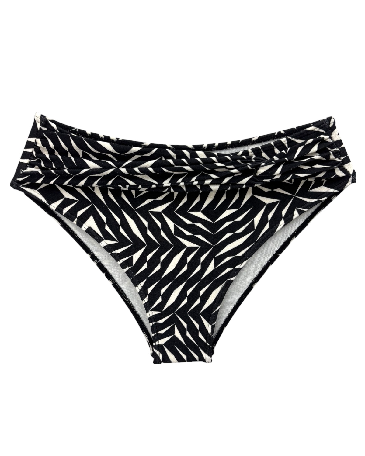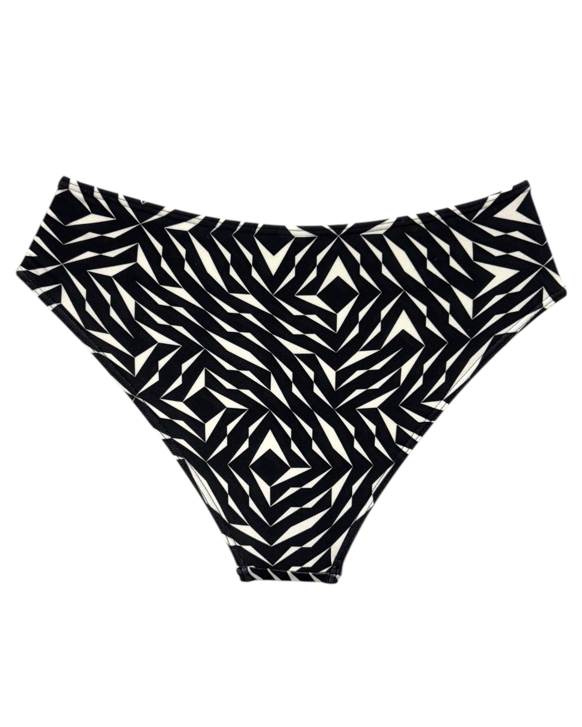 Tanga de biquíni modelo sunquíni, lateral larga e cós alto com detalhe somente na parte da frente de faixa entrelaçada formando um nó. Confeccionado com Tecido estampado.