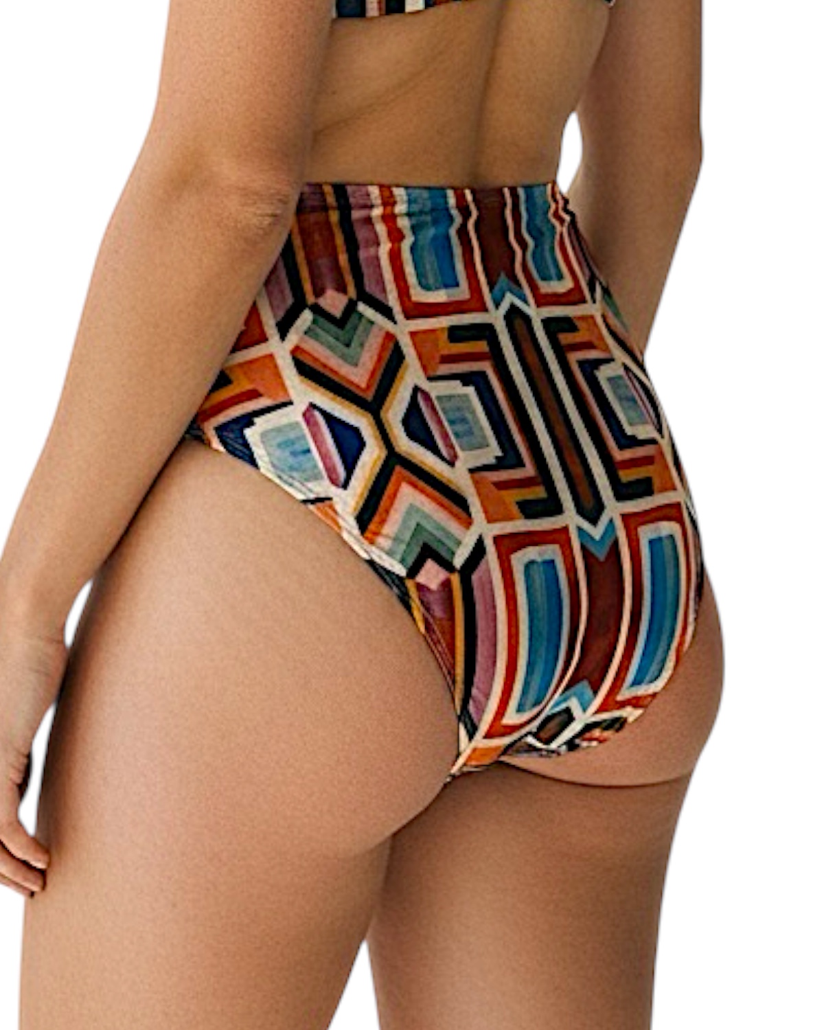 Tanga de biquíni modelo sunquíni, lateral larga e cós alto com detalhe somente na parte da frente de faixa entrelaçada formando um nó.