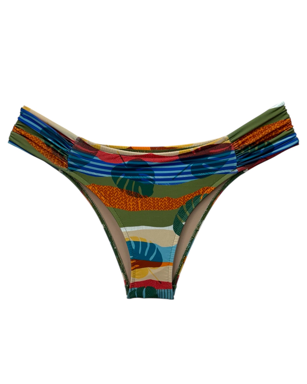 Tanga de biquíni lateral média com detalhe drapeado.