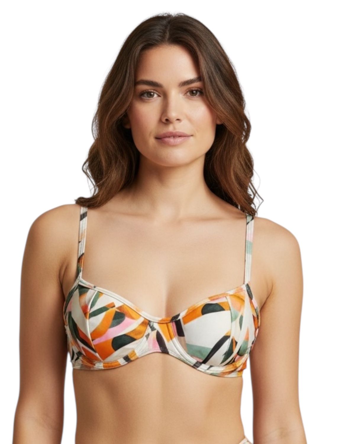 Top de biquíni modelo meia taça com aro e Bojo fixo. Este modelo apresenta alças reguláveis e fecho nas costas.