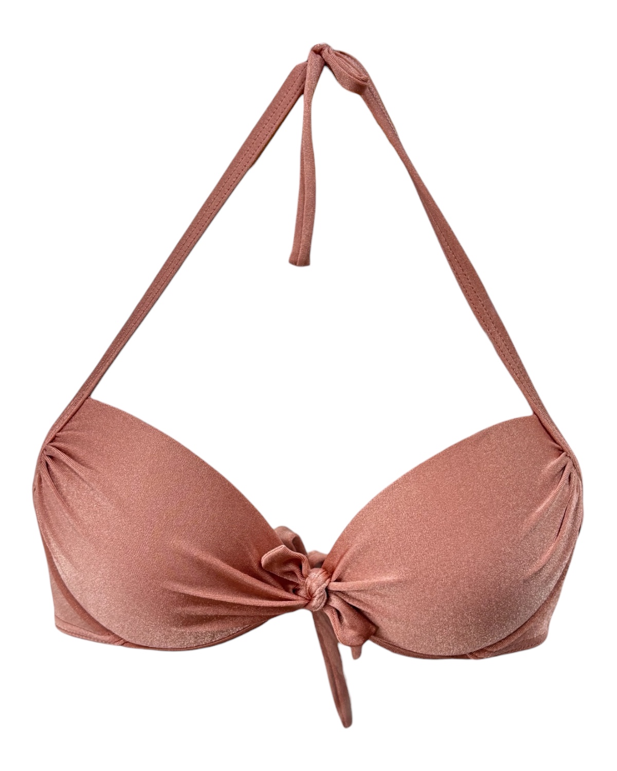 Top de biquíni meia taça com bojo e laço frontal , possui amarração no pescoço e costas. Modelo ideal para quem procura conforto e sustentação dos seios.