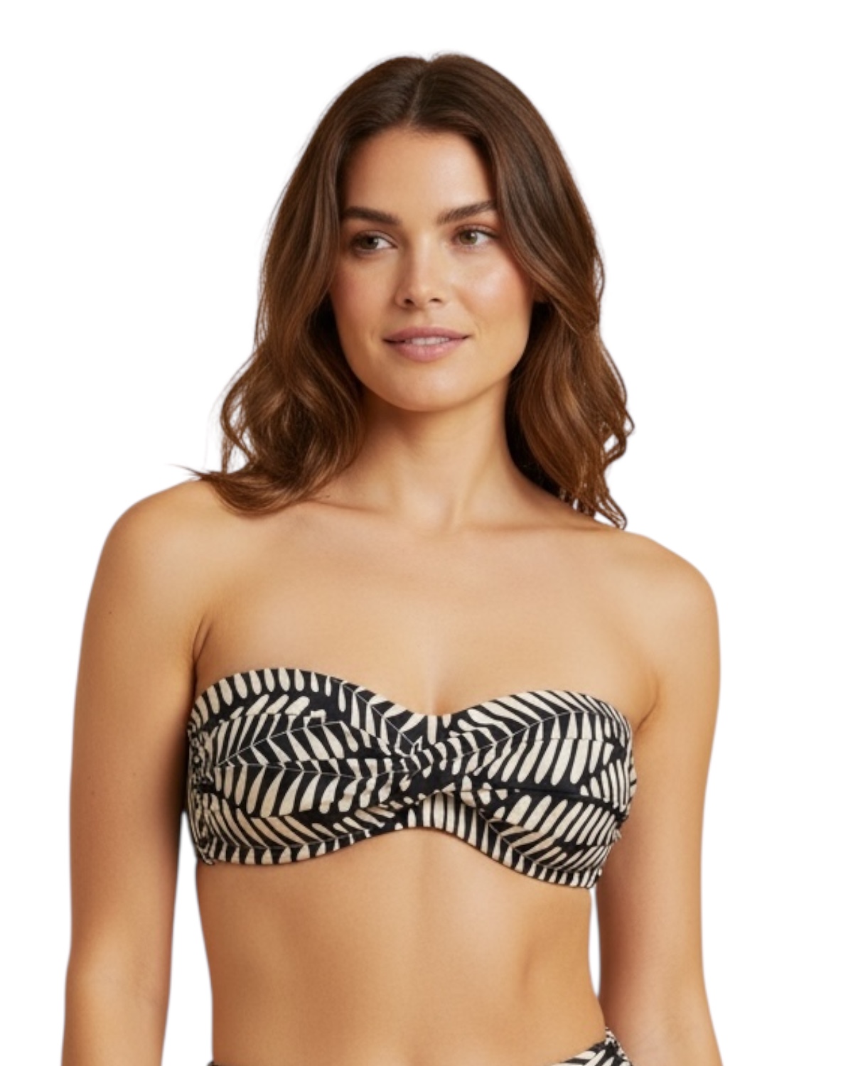 Top de biquíni estampado modelo tomara que caia com bojo inteiro.