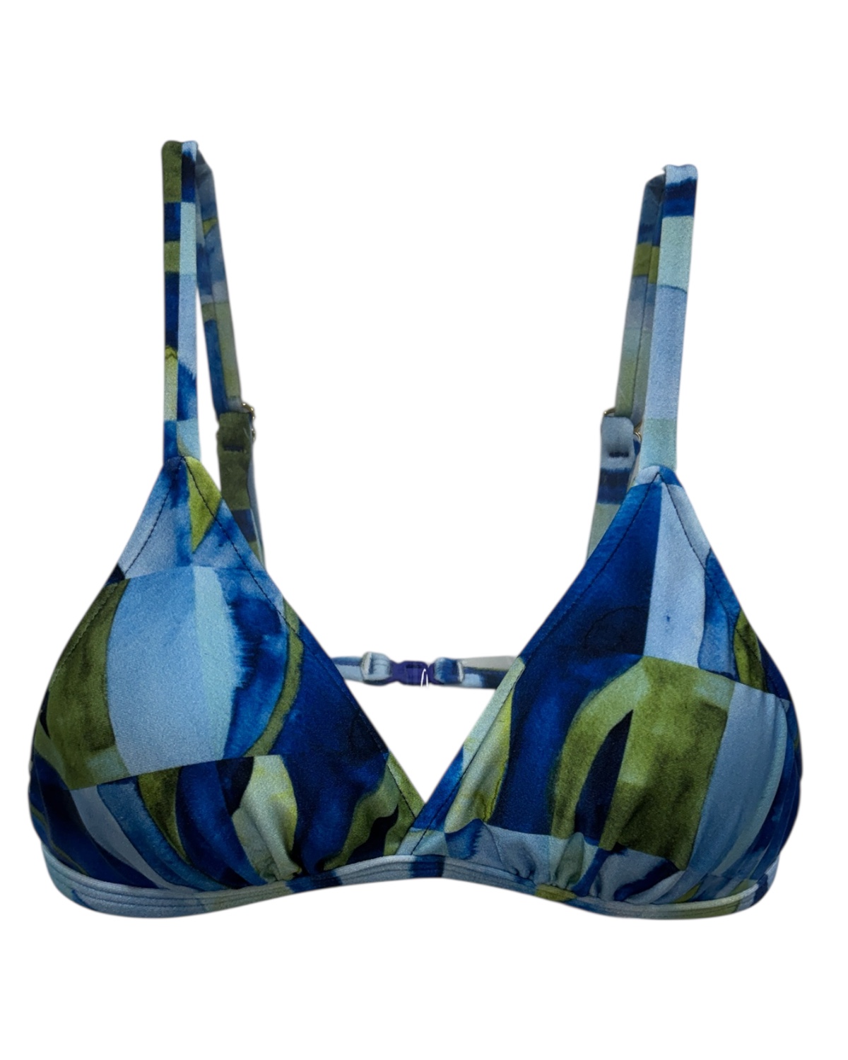 Top de biquíni com bojo removível, levemente transpassado na frente com alças finas, reguláveis e fecho nas costas.
